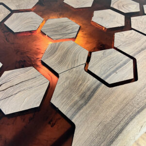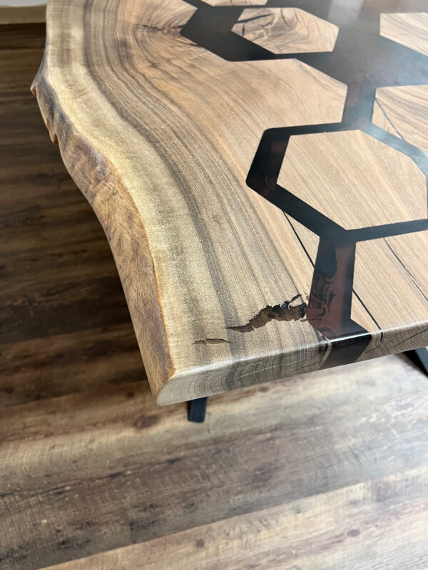 Hochwertiger Hexagon Waben Epoxidharz Tisch aus Walnuss